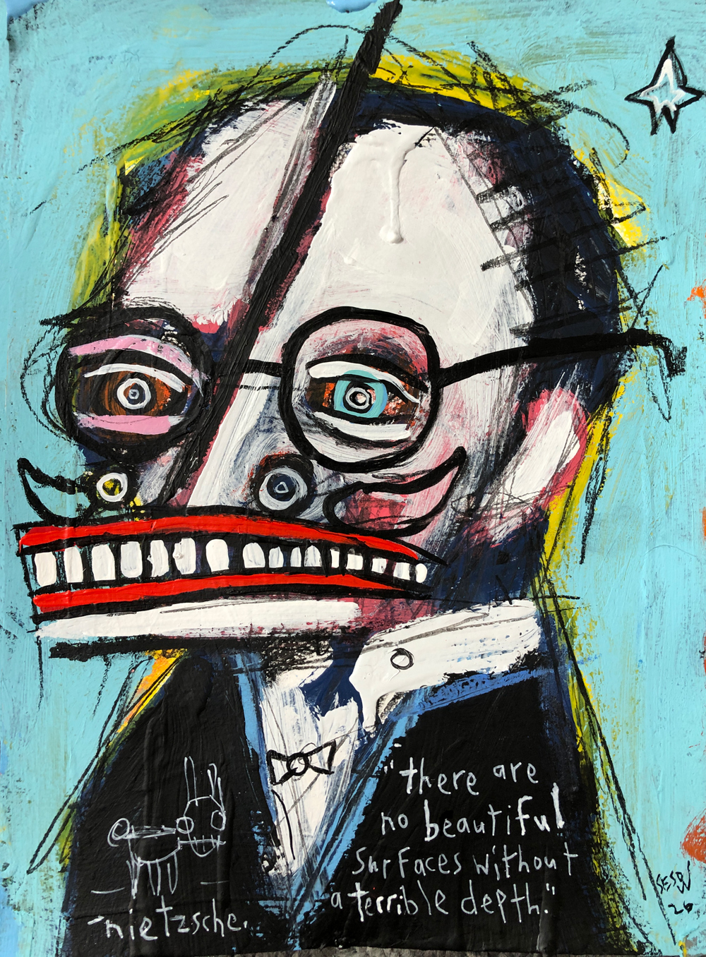 "Nietzsche" acrylic/oil on archival paper 9" x 12" *SOLD email sesow@sesow.com to reserve/ask about purchasing. please include url and description. |