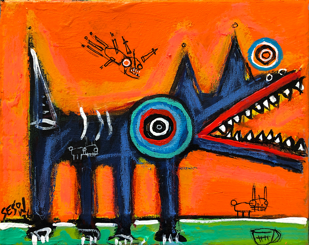 "Little Dog" acrylic/oil on stretched canvas 8" x 10" *SOLD email sesow@sesow.com to reserve/ask about purchasing. please include url and description. |