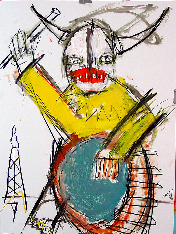 "Drum Beat to war" 18" x 24" oil/mixed on bristol paper $160 |
