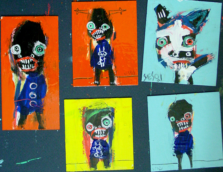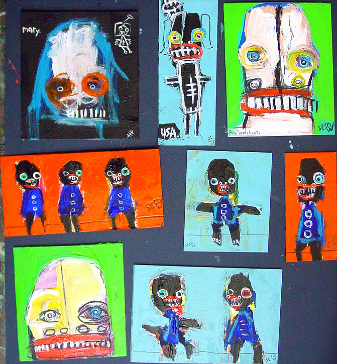 Matt Sesow Labor Day Picnic 2008 approx. 4" x 6" acrylic/mixed on archival matboard $35 shipped in america. email sesow.com to reserve |