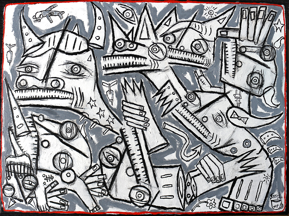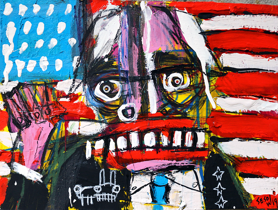 "Shock and Awe (2019)" acrylic/mix on stretched canvas 30" x 40" *SOLD email sesow@sesow.com to reserve/ask about purchasing. please include url and description. |
