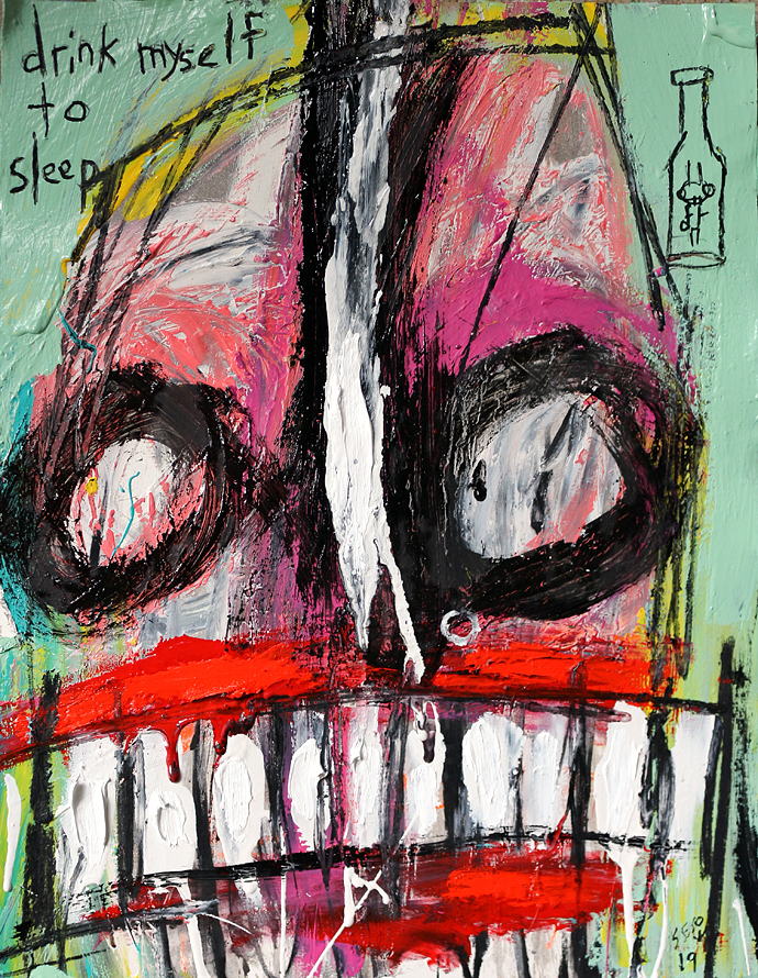 "Drink Myself to Sleep" acrylic/mix on archival paper 11" x 14" *SOLD email sesow@sesow.com to reserve/ask about purchasing. please include url and description. |