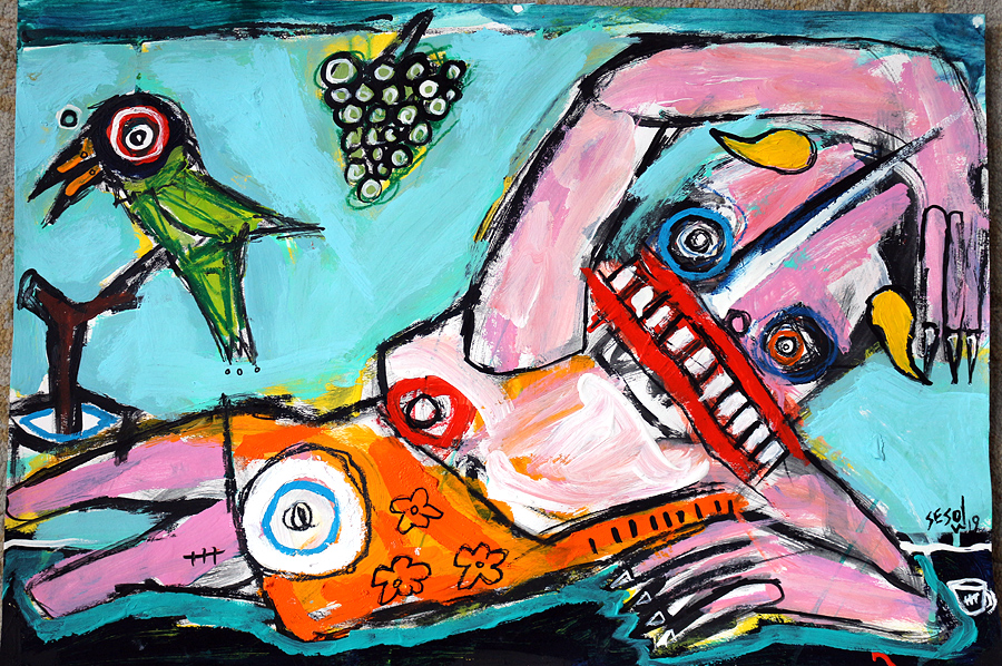 "Reclined" acrylic/mix on archival paper 22" x 15" *SOLD email sesow@sesow.com to reserve/ask about purchasing. please include url and description. |