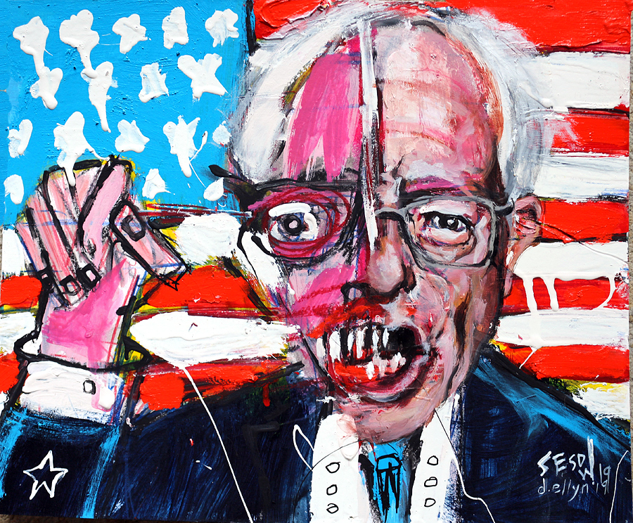 "Bernie." acrylic/mix on matboard 10.5 x 13" *SOLD email sesow@sesow.com to reserve/ask about purchasing. please include url and description. |