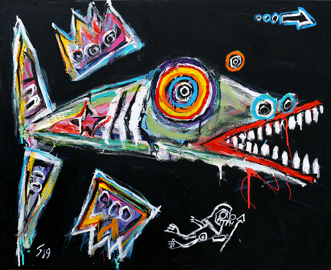 "Re-Enabled Fish" acrylic stretched canvas 30" x 24" *SOLD third painting in a series created by taping brushes to the left arm. the right hand was not used at all in the creation of this painting unique signature "S 19" appears at the bottom of the painting. New series of Matt Sesow paintings entitled "Re-Enabled", began July 2019. this painting was featured in a recent interview for the series "Beating the Odds" where i also explain the idea behind the "re-enabled" paintings WATCH the video interview by clicking the Beating the Odds link here email sesow@sesow.com to reserve/ask about purchasing. please include url and description. |