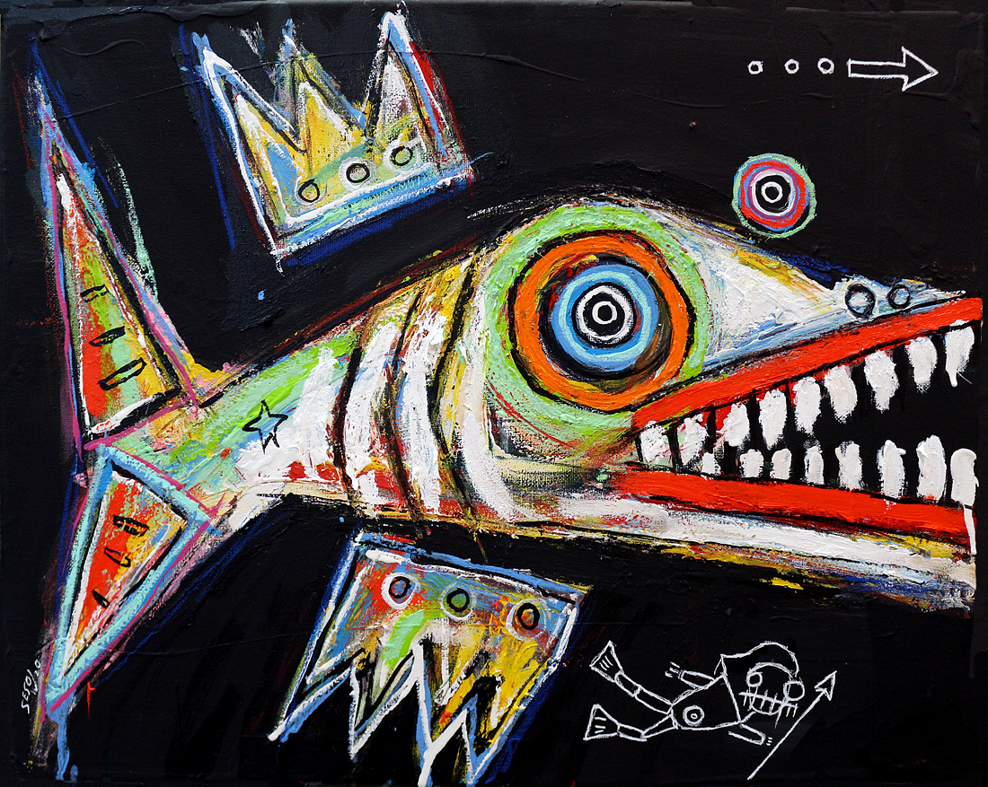 "Upstream" acrylic/oil/mix on stretched canvas 16" x 20" *SOLD email sesow@sesow.com to reserve/ask about purchasing. please include url and description. |