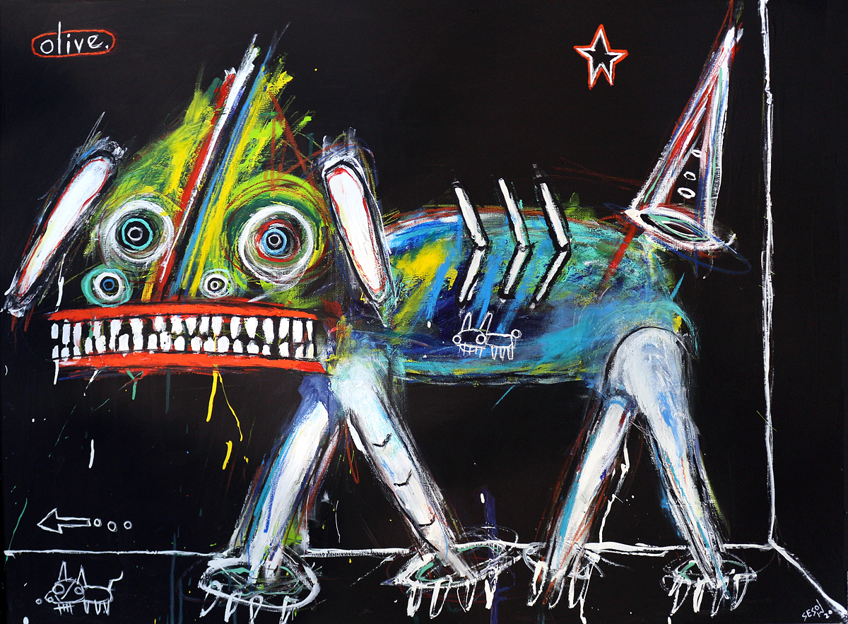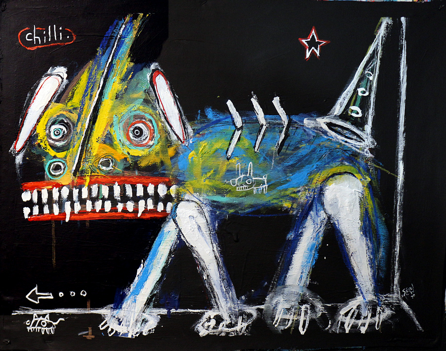 "The Dog" oil/mix on unstretched canvas approx. 18" x 24" *SOLD email sesow@sesow.com to reserve/ask about purchasing. please include url and description. |