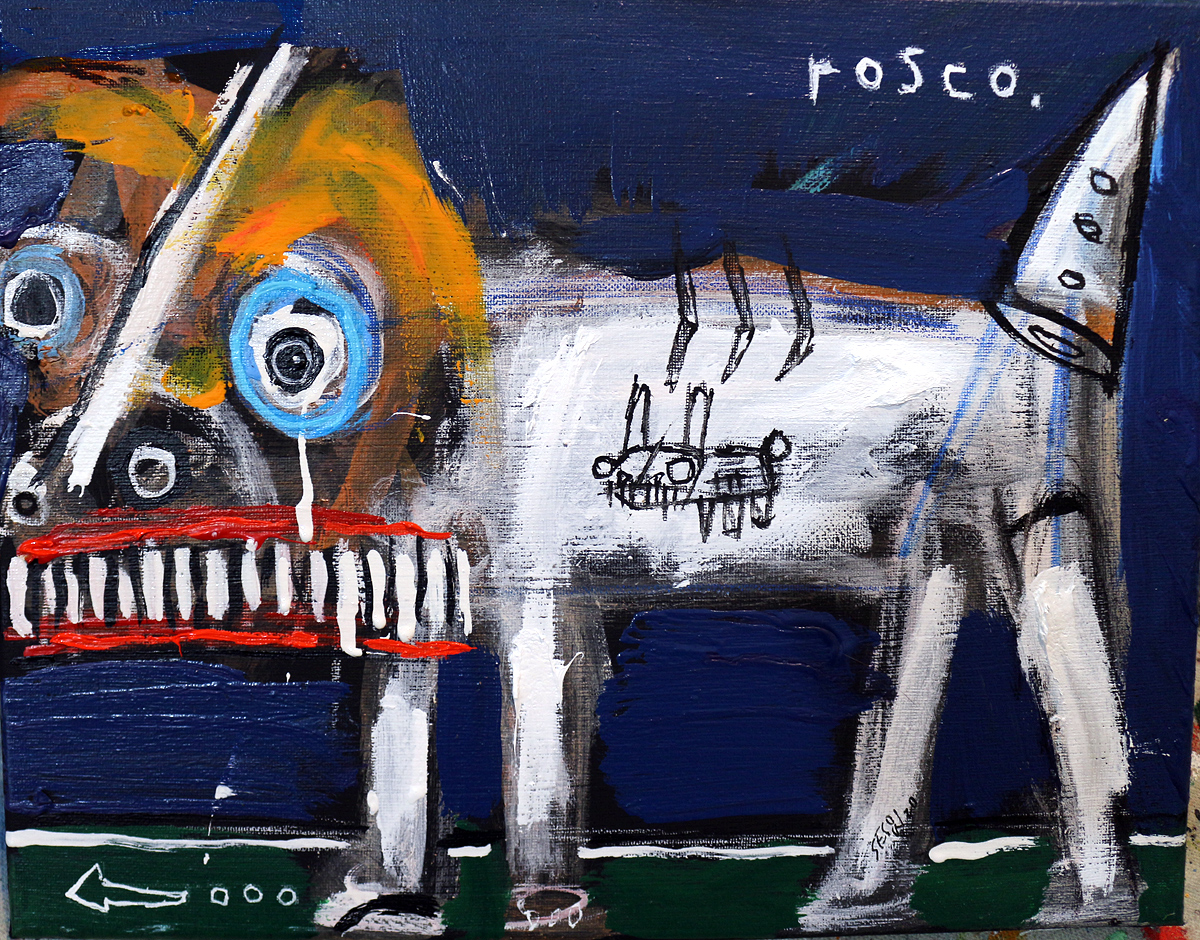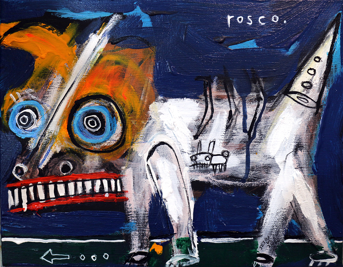"Rosco" acrylic/mix on stretched canvas 11" x 14" *SOLD email sesow@sesow.com to reserve/ask about purchasing. please include url and description. |