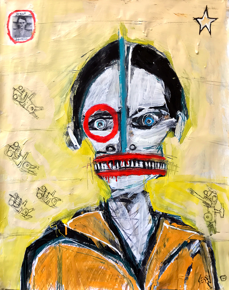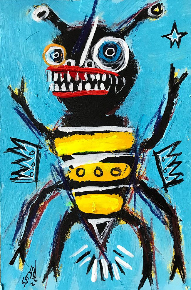 "The Bee" acrylic/mix on watercolor paper 6" x 9" *SOLD email sesow@sesow.com to reserve/ask about purchasing. please include url and description. |