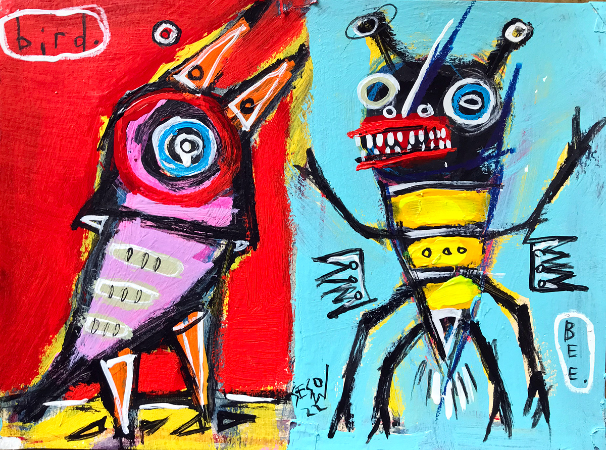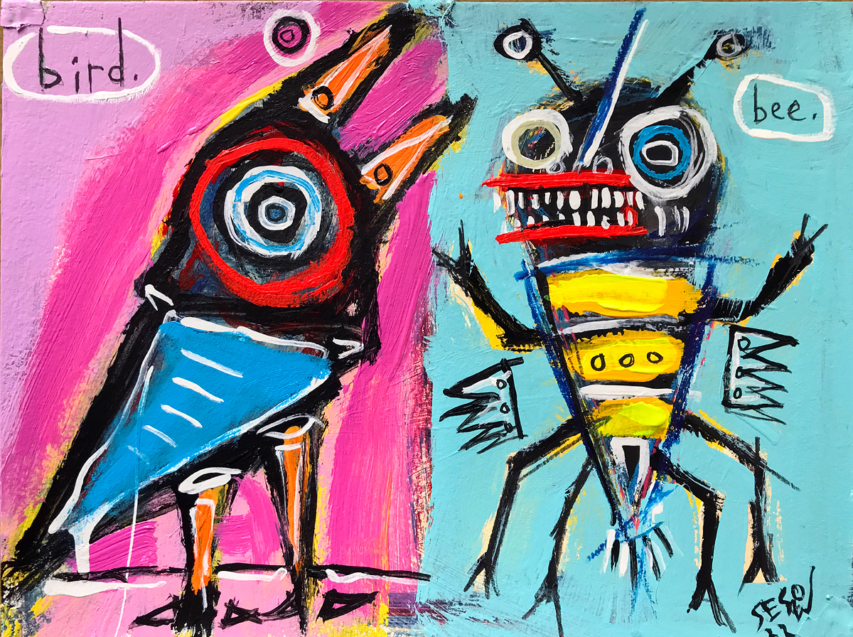 "The Bird and the Bee" acrylic/mix on watercolor paper 9" x 12" *SOLD email sesow@sesow.com to reserve/ask about purchasing. please include url and description. |