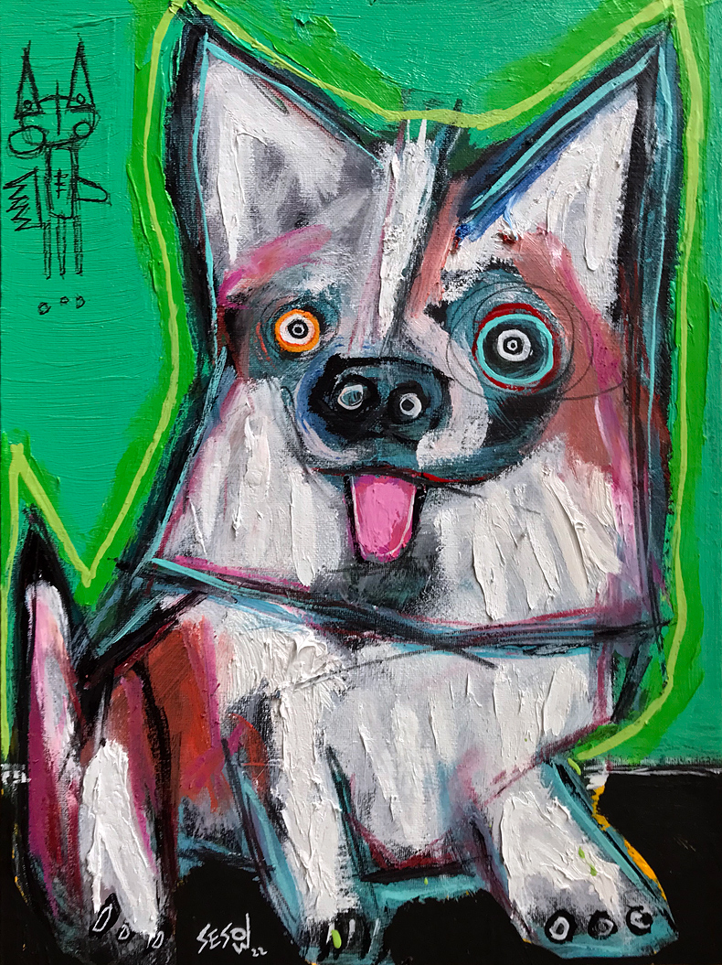 "The undocked Corgi" acrylic/oil on canvas board 12" x 16" *SOLD email sesow@sesow.com to reserve/ask about purchasing. please include url and description. |