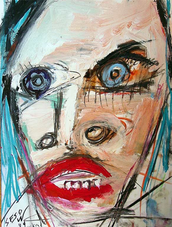 "makeup" 9" x 12" acrylic/mixed on bristol paper *SOLD |