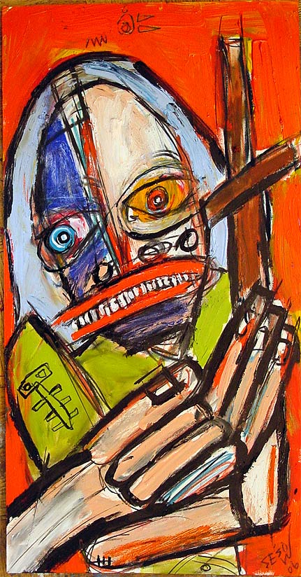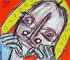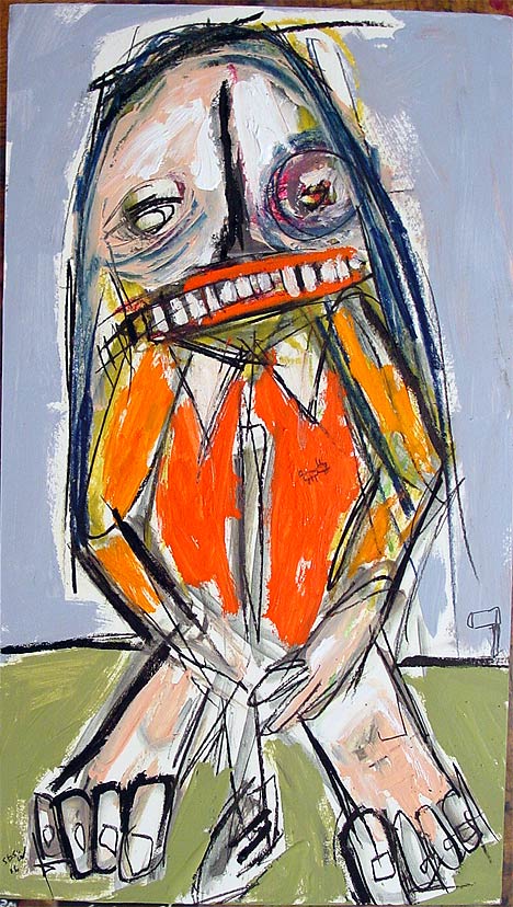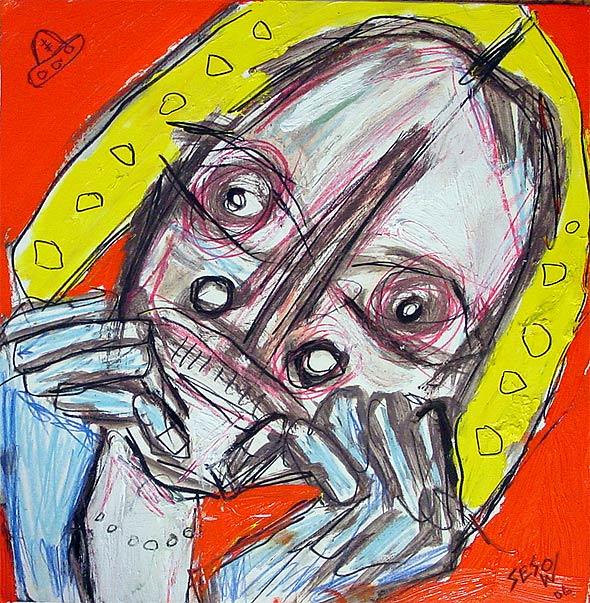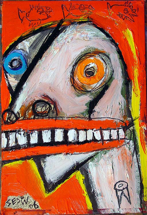 "alien" 12" x 12" oil/mixed on matboard *SOLD |