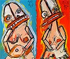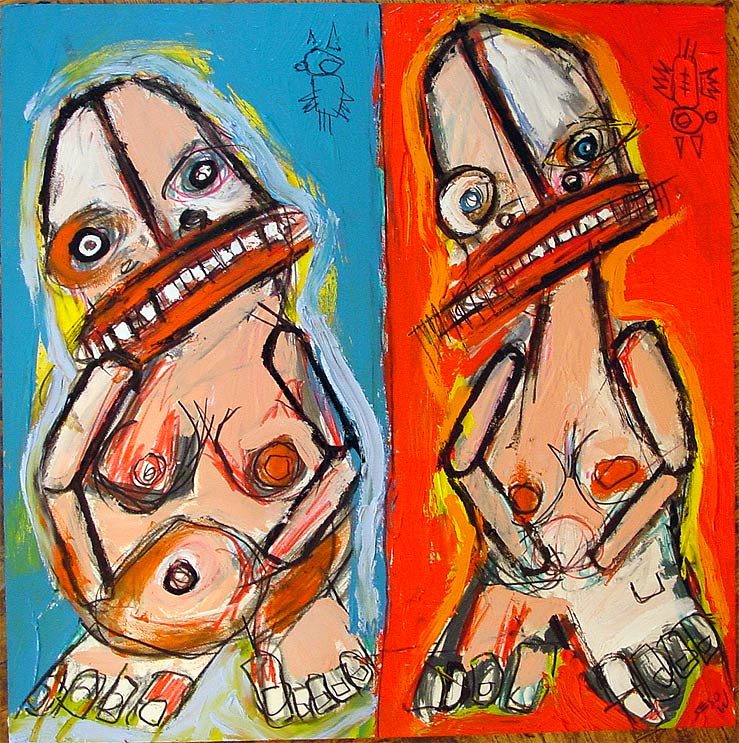 "Big Katie, Littler Katie" aaprox 16" x 16" oil/mixed on matboard *SOLD |