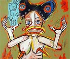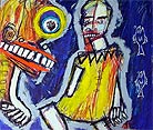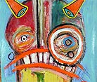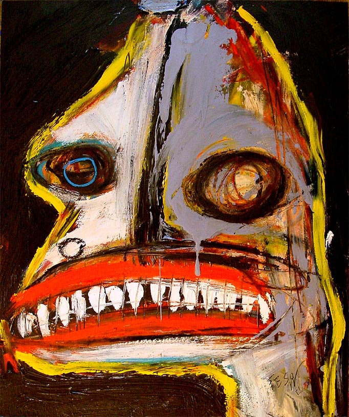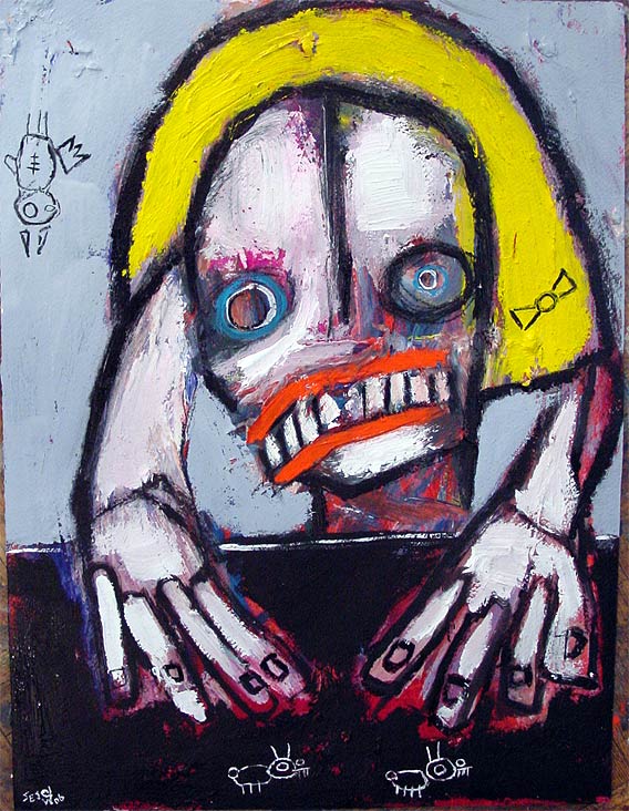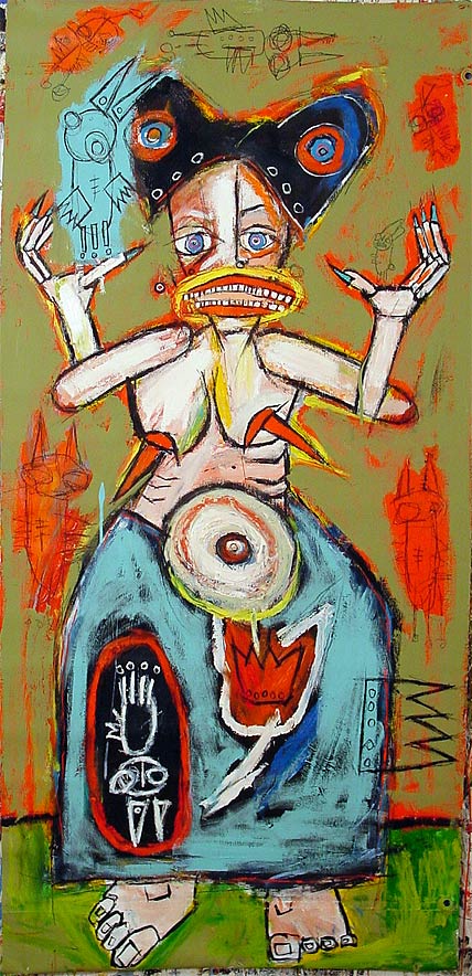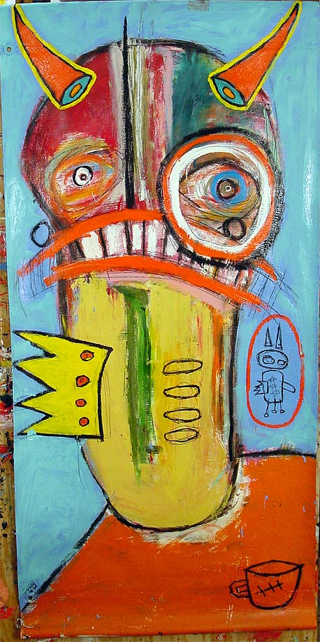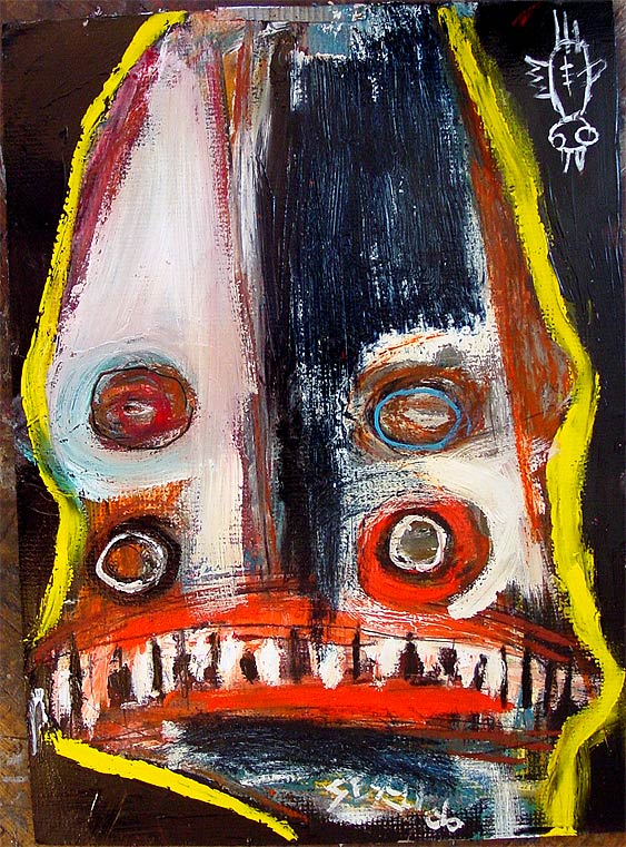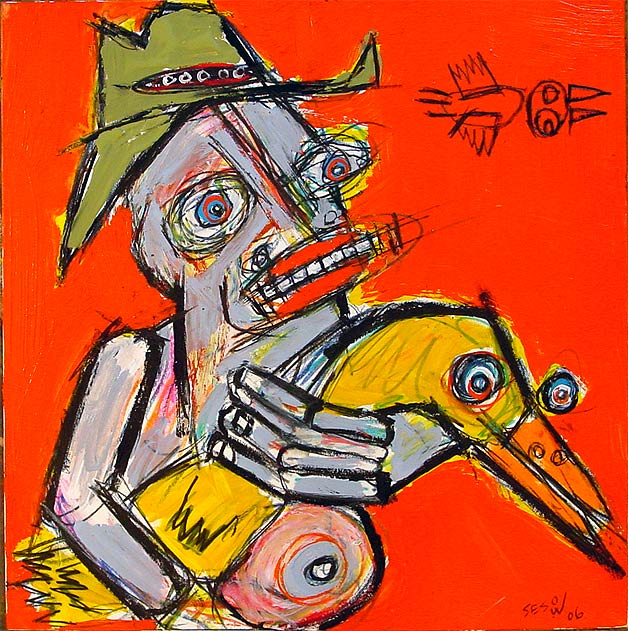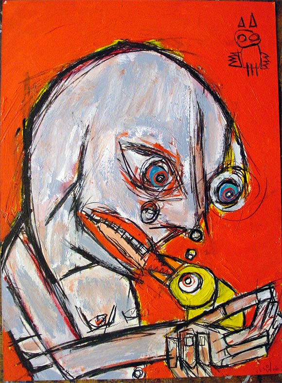 "Cute Little Carnivore" approx 16" x 16" acrylic/mixed on matboard *SOLD |