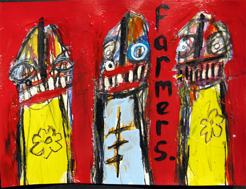 "Farmers" 9" x 12" acrylic/oil on bristol paper *SOLD created for the play "all you can eat" in san francisco, september 2008 |