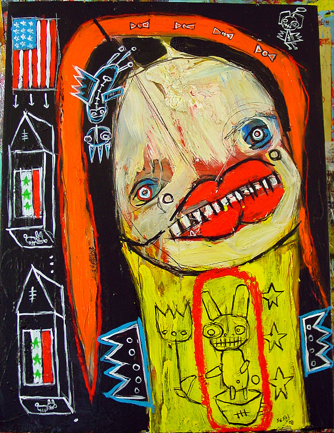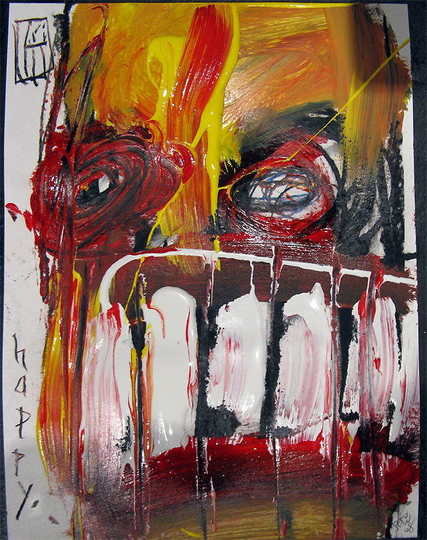 "happy1" 9" x 12" acrylic/oil on bristol paper $70 created for the play "all you can eat" in san francisco, september 2008 |
