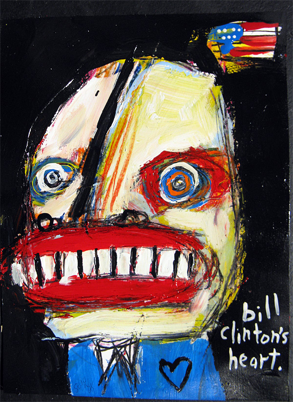 "Bill Clinton's Heart" 9" x 12" acrylic/oil on bristol paper $65 created for the play "all you can eat" in san francisco, september 2008 |