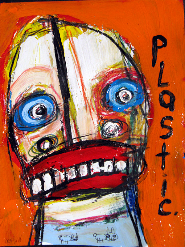 "Plastic" 9" x 12" acrylic/oil on bristol paper *SOLD created for the play "all you can eat" in san francisco, september 2008 |