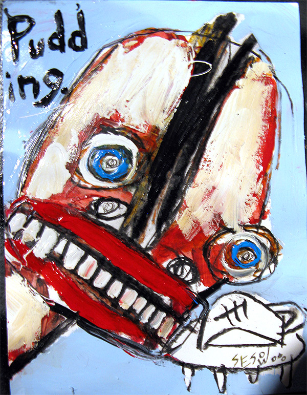 "Pudding" 9" x 12" acrylic/oil on bristol paper *SOLD created for the play "all you can eat" in san francisco, september 2008 |