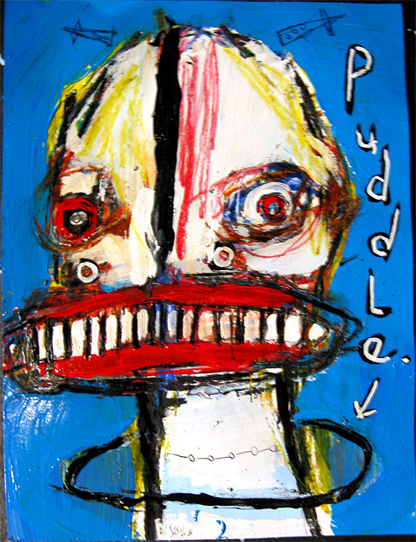 "Bully in a Puddle" 9" x 12" acrylic/oil on bristol paper $80 created for the play "all you can eat" in san francisco, september 2008 |
