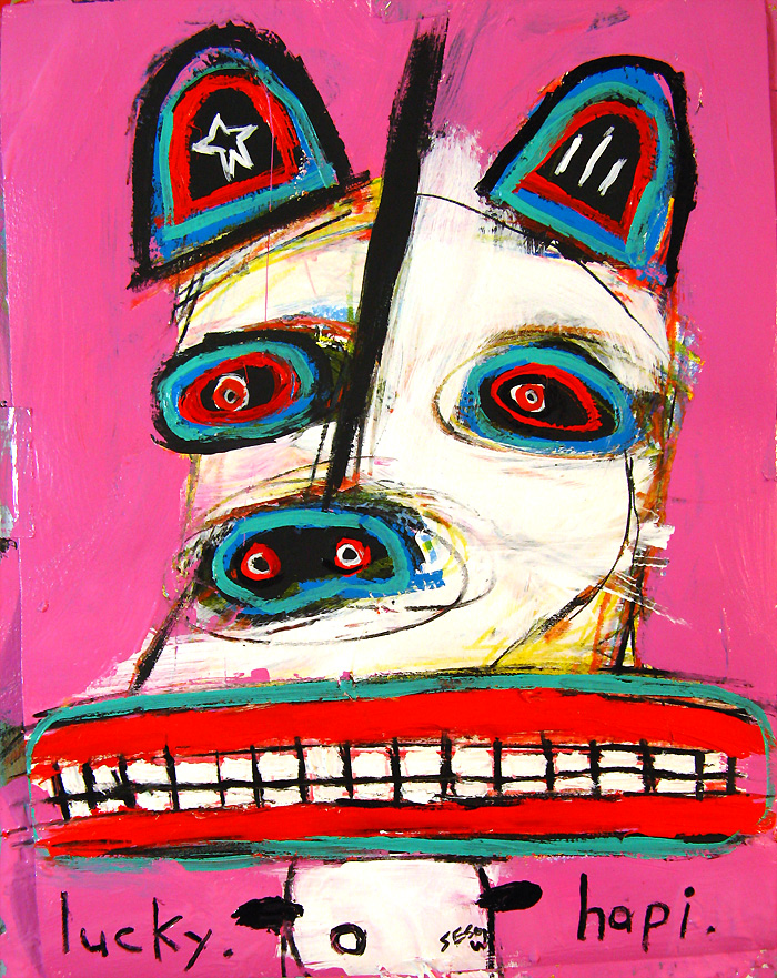 "Hapi Lucky Pink Panda" 10.5" x 13.5" acrylic/mix on paper *SOLD |