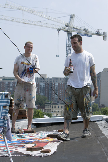 ![]() "Alley Cats" (collaboration of matt sesow and james coleman). created in an alley in adams morgan in june 2006 oil/housepaint/acrylic on loose canvas $600 ( email sesow@sesow.com) ![]() "Drowning" (collaboration of matt sesow and james coleman). created in an alley in adams morgan in june 2006 oil/housepaint/acrylic on loose canvas $600 ( email sesow@sesow.com) ![]() "pool party" (collaboration of matt sesow and james coleman). created on DC rooftop in june 2006 oil/housepaint/acrylic on loose canvas $600 (email sesow@sesow.com) ![]() "Martyr" (collaboration of matt sesow and james coleman). created on DC rooftop in june 2006 oil/housepaint/acrylic on loose canvas $600 ( email sesow@sesow.com) ![]() From a hot day in June on a rooftop in downtown DC (5th street) Photos copyright Mike Olliver. visit Mike's website at www.mikeolliver.com